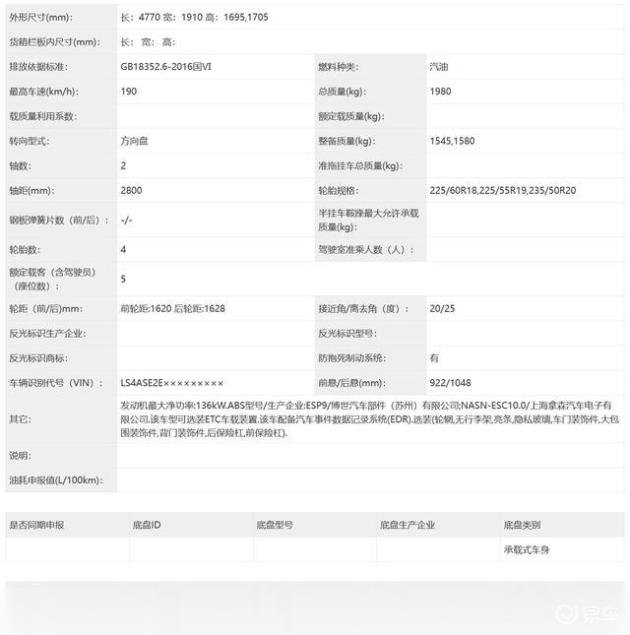 尺寸方面,新车的长宽高分别是4770/1910/1695(1705)mm,轴距为2800mm,定位应该依然是紧凑型SUV,轮胎方面有225/60 R18、225/55 R19以及235/50 R20规格可选。