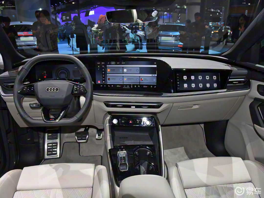 进入车内,全新奥迪Q5L提供黑色、黑色/米色、黑色/棕色和黑色/赤陶红色四种配色选择,配备11.9英寸液晶仪表屏、14.5英寸中控屏、10.9英寸副驾屏,以及13.1英寸浮影W-HUD,车内共计四块屏幕,可与手机实现五屏联动,提供CarPlay手机互联和前排手机无线充电面板。