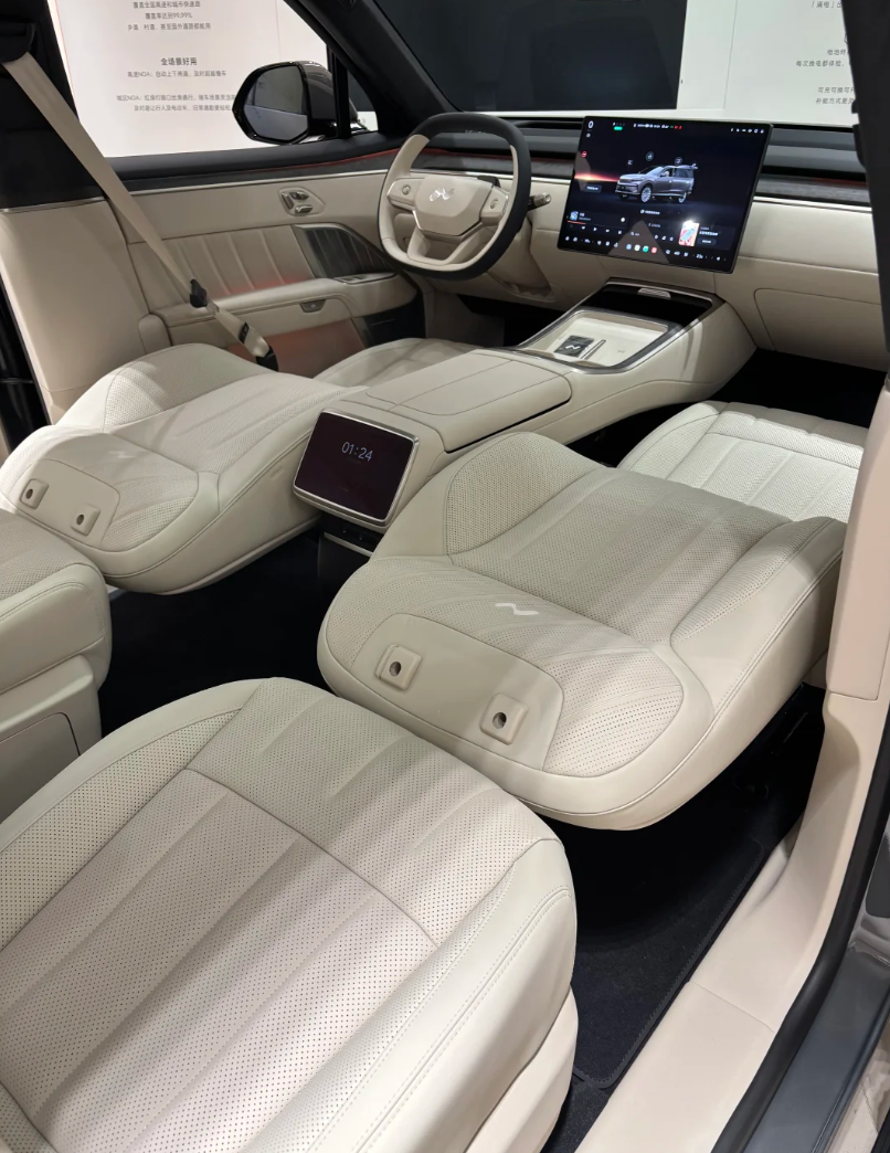 车身尺寸为5146×1998×1766mm,轴距3110mm,采用双电机四驱,电机总功率为440kW,零百加速时间5.7秒;搭载85kWh电池组,CLTC纯电续航里程570km,搭载900V高压平台,可共享蔚来3600多座换电站,3分钟完成换电;配置方面,真皮座椅、第一排和第二排座椅加热/通风/按摩、第三排带加热、第二排右侧为零重力座椅、23扬声器音响,1600万色车内氛围灯;后备箱容积430-1214L,前备舱240L。
