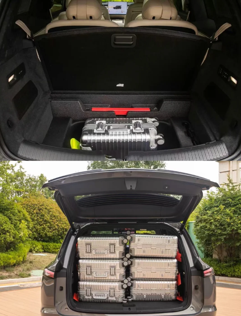 车身尺寸为5190×1999×1795mm,轴距3105mm,采用双电机四驱,电机总功率387kW,搭载100kWh电池组,CLTC纯电续航里程655km,搭载800V高压平台;配置方面,真皮座椅、第一和第二排座椅加热/通风/按摩、19扬声器音响,多色车内氛围灯,搭载华为ADS智能驾驶辅助系统;后备箱容积393-1323L,前备箱容积149L。