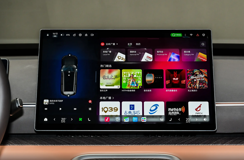 拉开车门,进入零跑D19的座舱,“T”字形中控台提供云雾灰和丹雅棕两种配色风格,用户可根据自己的审美来选择。该款车的内饰提供软皮、木纹饰板以及亮银色金属条等元素拼接而成,扎实的用料达到这个价位应有的表现。智能化方面,零跑D19配备了中规中矩的双屏布局,符合传统用户的使用习惯。屏幕承载了大量的车辆控制功能,主菜单栏正下方保留了多个实体按键,就算对智能化不熟悉的朋友也能对其进行操控,避免了多级菜单栏查找的困扰。此外,该款车的中控区还配备了手机无线充电面板和中控双杯架,合理的布局方便物品的拿取与放置。