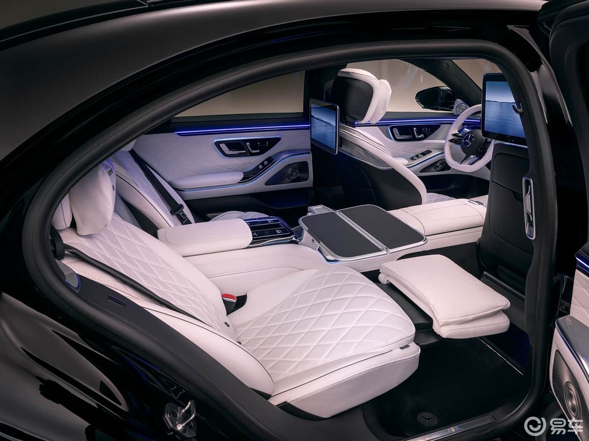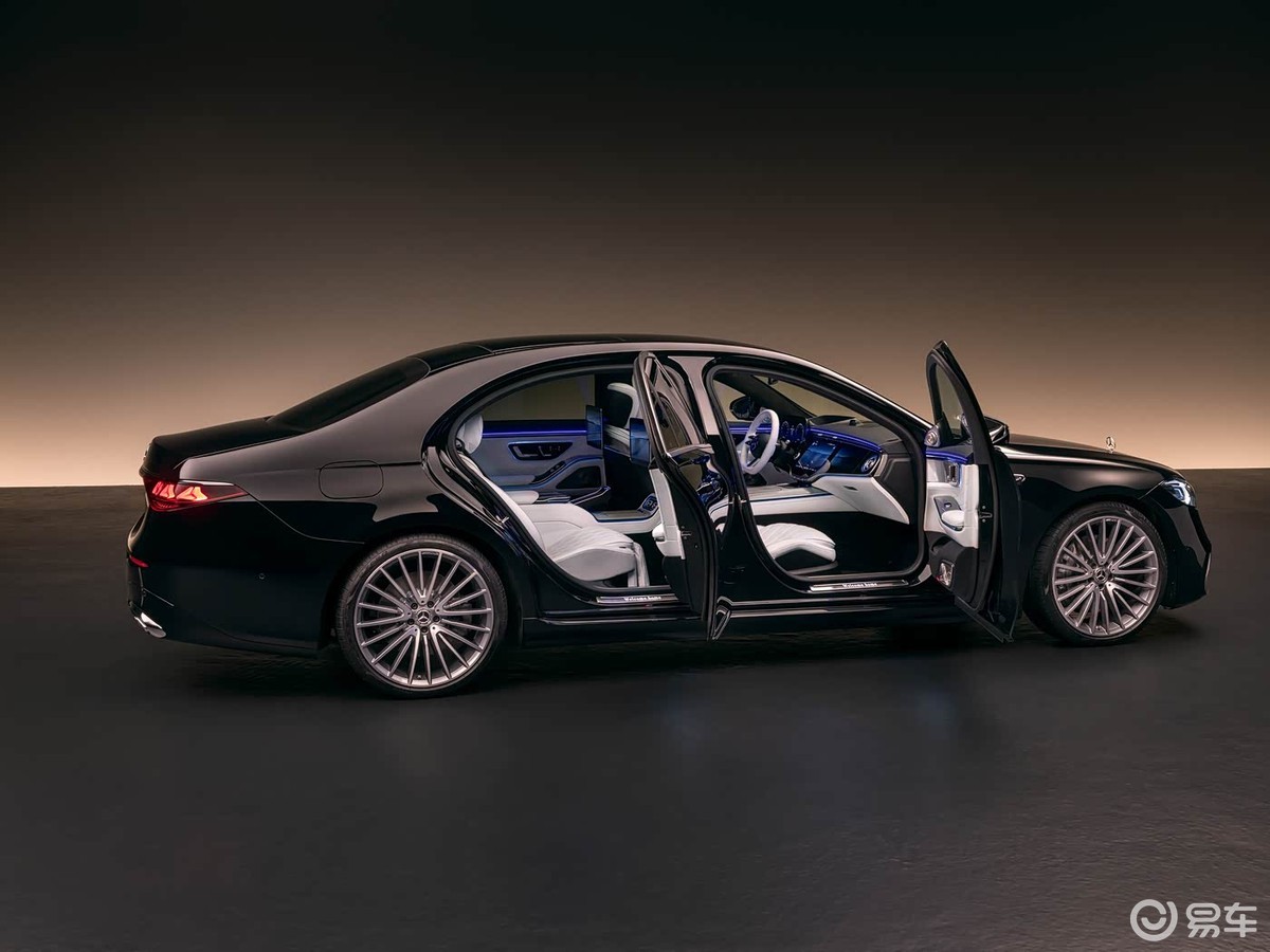 新款S级外观上的调整颇为显著,前脸采用了尺寸增大约20%的发光格栅,内部横向镀铬辐条增加至四条,并点缀以3D镀铬星徽。经典的立标首次具备发光功能。大灯设计更新为“双星徽”造型,尾灯也以三枚星徽元素与之呼应。当携带钥匙走近车辆时,灯组会呈现动态迎宾效果,侧裙处的光感投影装置可在地面投射出品牌徽标或字样。新车将继续提供两种风格的外观套件,主要区别在于镀铬饰件与熏黑饰件的运用。