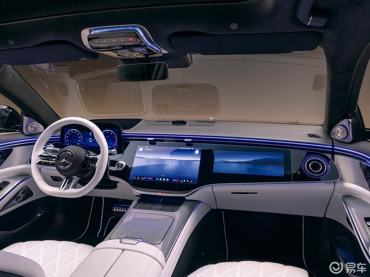车内布局进行了重要调整,中控台采用了一体式玻璃面板,将14.4英寸中央触控屏与12.3英寸前排乘客娱乐屏融合为一块“超级屏”。副驾屏幕配备了“隐私模式”,以减少对驾驶员的干扰。最新版本的MBUX智能人机交互系统整合了多项生成式AI技术。方向盘回归了更多实体按键与滚轮设计。前排配备了双手机无线充电面板、加热式安全带,座椅提供多种按摩模式。