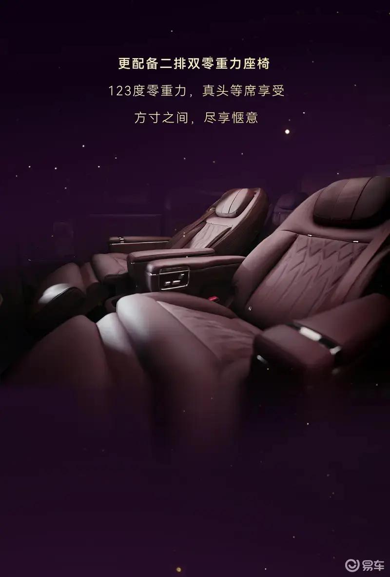 其中二排双零重力座椅还支持45度旋转迎宾、90度及180度旋转,打造多变格局。此外,二排还首发搭载环抱式安全气囊。