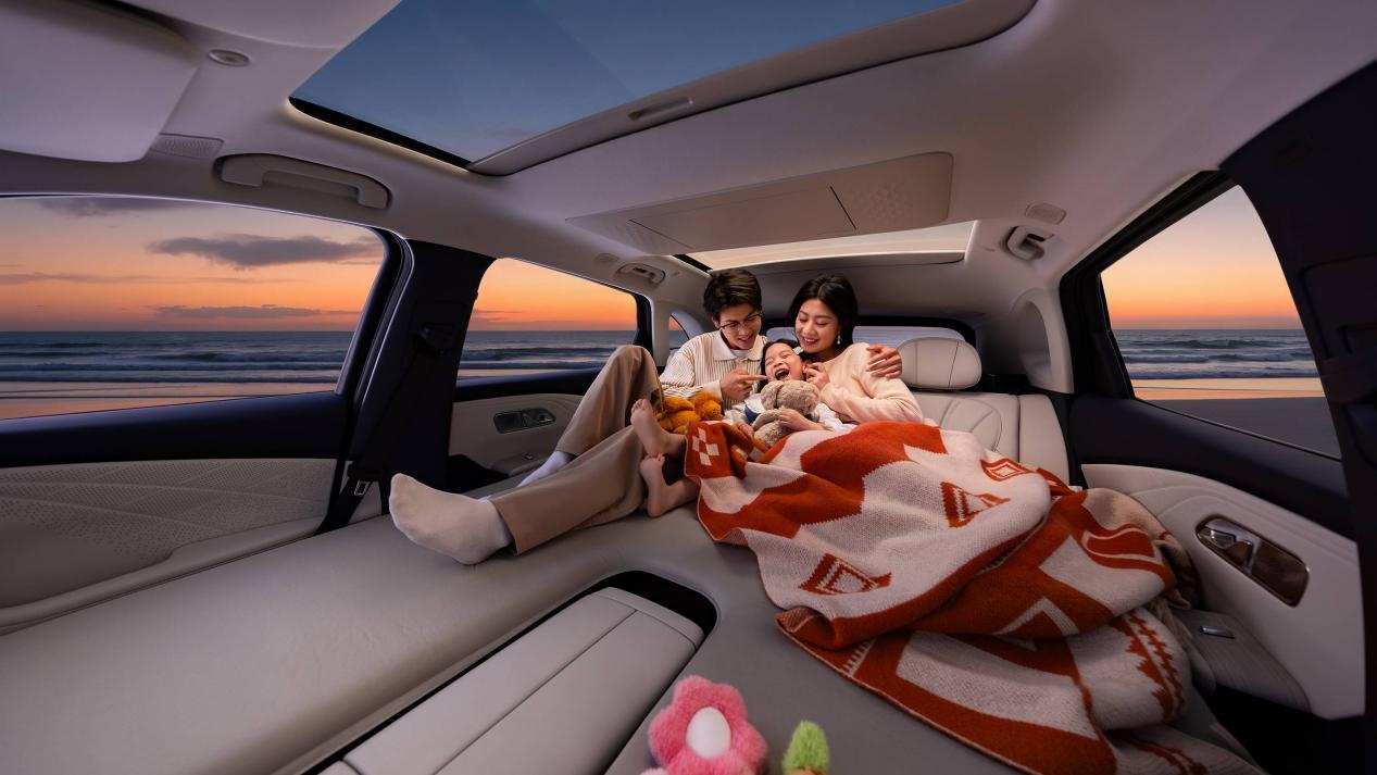 场景3:亲子家庭周末游——“移动影院+储物灵活”痛点:孩子出行无聊哭闹,露营装备、渔具、儿童车等大件物品装不下;车内空间利用率低,储物杂乱。
