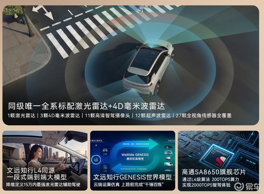 智能辅助驾驶也没有缺席,AION N60全系标配4D毫米波雷达+192线激光雷达,采用文远知行端到端大模型,支持NDA城区/高速领航辅助、全场景智能泊车等功能,可实现跨楼层记忆泊车(部分功能需OTA升级)。
