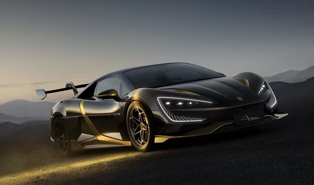本次展出的U9X“破晓时刻”是按照量产标准打造的第一台高定实车,将极限超跑推向定制化交付。设计灵感源自U9X打破纪录当天清晨冲破云层的阳光,车漆中加入微米级超细金粉,呈现日出般的流光效果;车身哑光金部分采用中国非遗大漆打磨工艺,让现代超跑承载东方工艺的温润质感。仰望U9X全球限量发售30台,面向全球顶级藏家,目前已有部分车主完成定制方案确认,进入签约排产阶段。