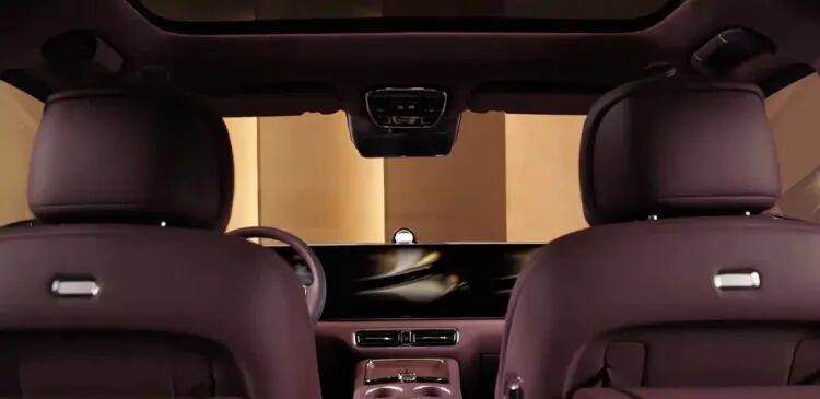 从内饰官图来看,智界V9兼顾科技与豪华,采用了一体式的横向贯穿屏幕,风格有些类似此前的问界M8/M9。内饰为绒霞紫配色,采用大量的皮质包裹,并辅以天然实木饰板、水晶旋钮提升时尚感,包括HUAWEI SOUND音响系统、手机无线快充、车载氧吧、鸿蒙座舱等配置都有。